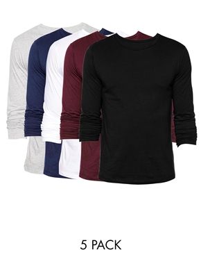 ASOS - Lot de 5 t-shirts ras du cou à manches longues - Économie de 25%