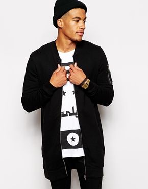• ASOS - MA1 - Blouson aviateur ultra long en jersey - Noir