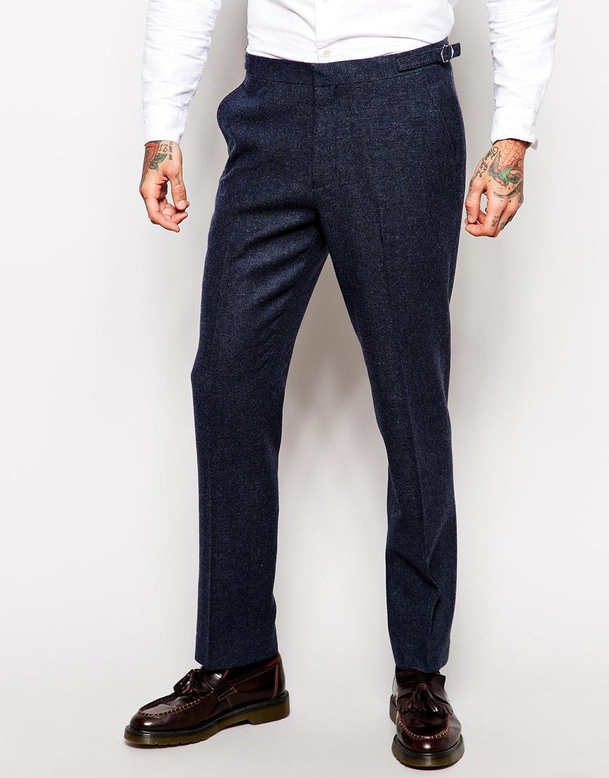 ASOS - Pantalon slim à chevrons - Bleu marine
