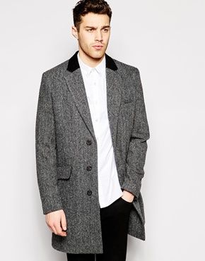Achetez ASOS - Pardessus Harris en tweed à motif chevrons, Asos pour homme sur Pickture, dans les tendances ASOS, motif, Gris