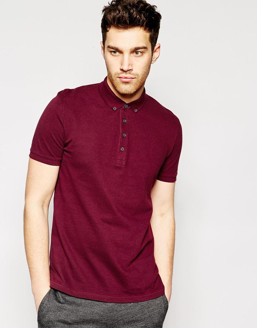 • ASOS - Polo en maille piquée avec col boutonné - Bordeaux