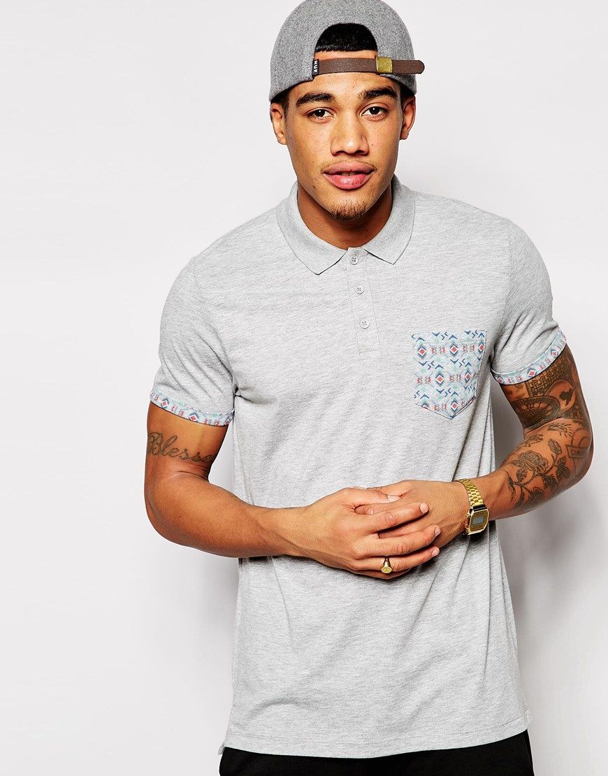 Achetez ASOS - Polo long avec poche à imprimé aztèque, polo Asos pour homme sur Pickture, dans les tendances ASOS, Polo, Gris