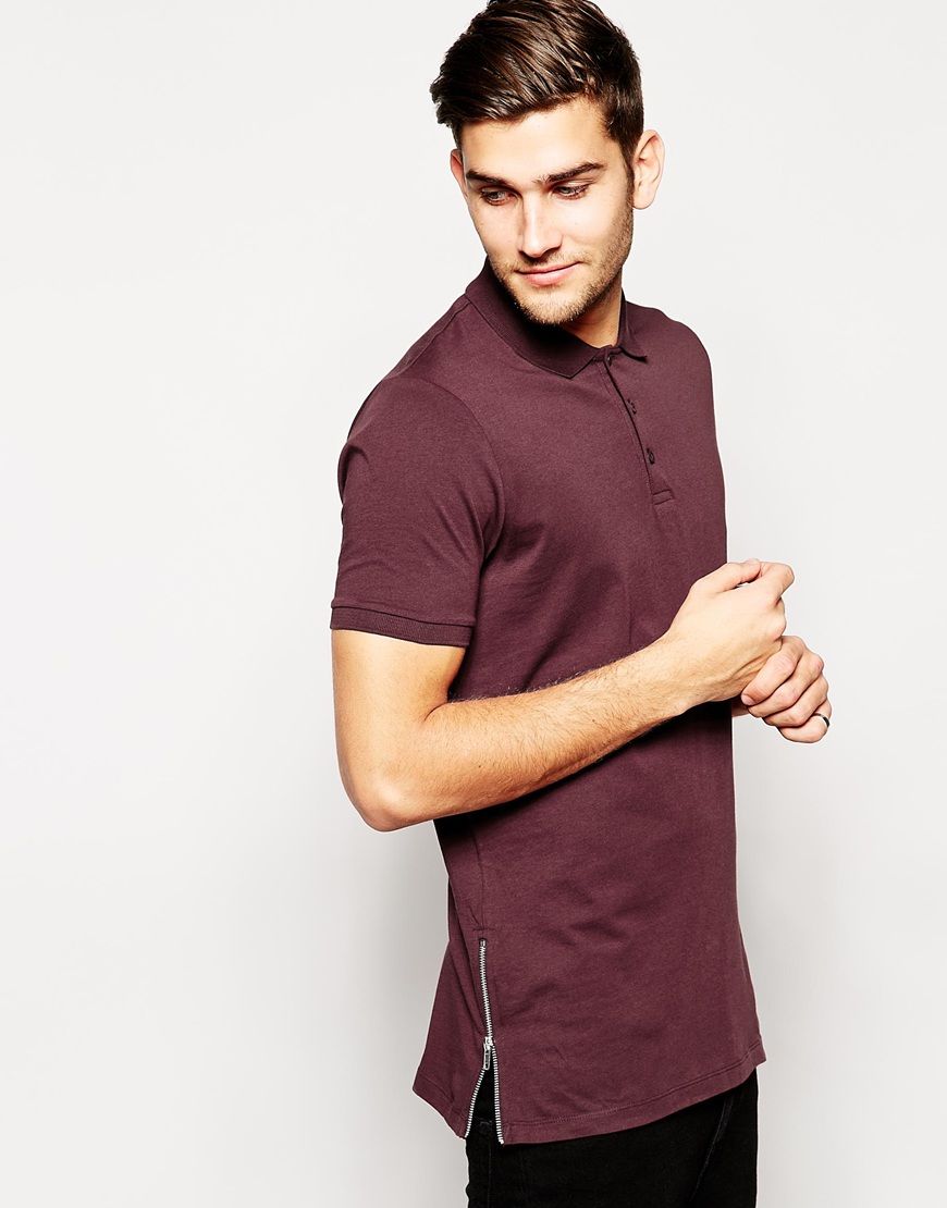 ASOS - Polo long en jersey avec fermetures éclair sur les côtés - Bordeaux