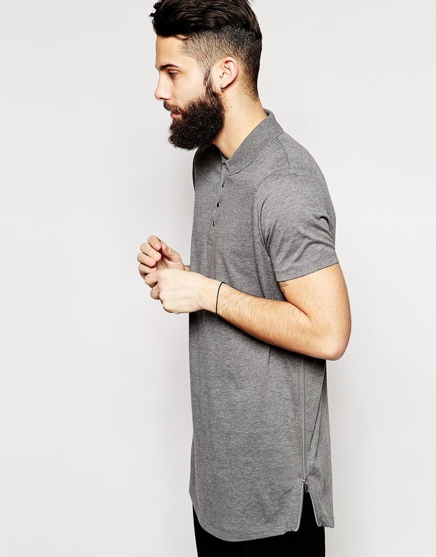 • ASOS - Polo ultra long avec fermeture Ă©clair sur les cĂ´tĂ©s et bas arrondi - Gris anthracite chinĂ©
