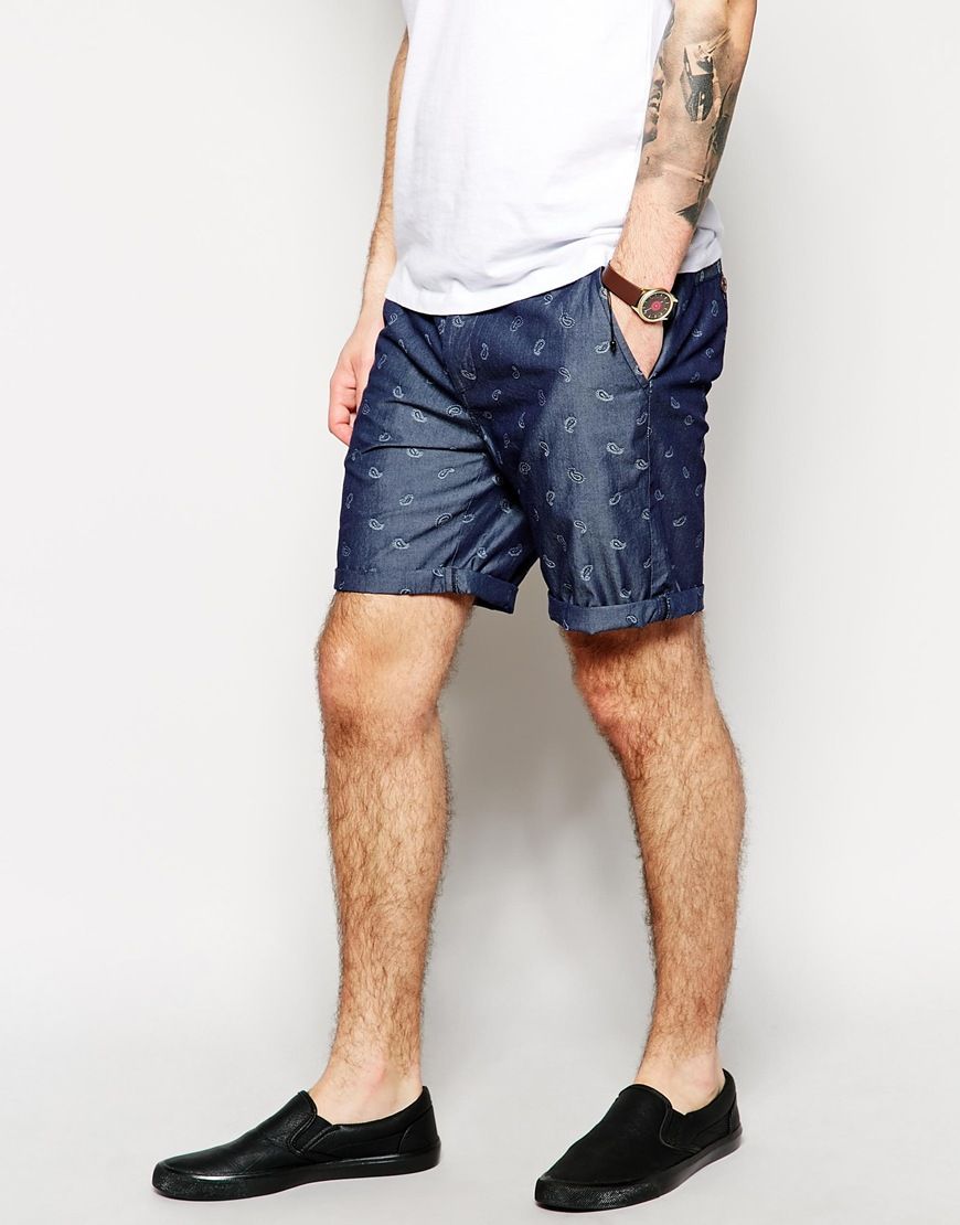 • ASOS - Short chino en chambray imprimé cachemire - Bleu