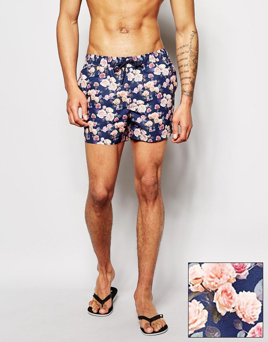 Achetez ASOS - Short de bain fleuri court, Asos pour homme sur Pickture, dans les tendances ASOS, Short, bain, fleuri, Bleu, marine