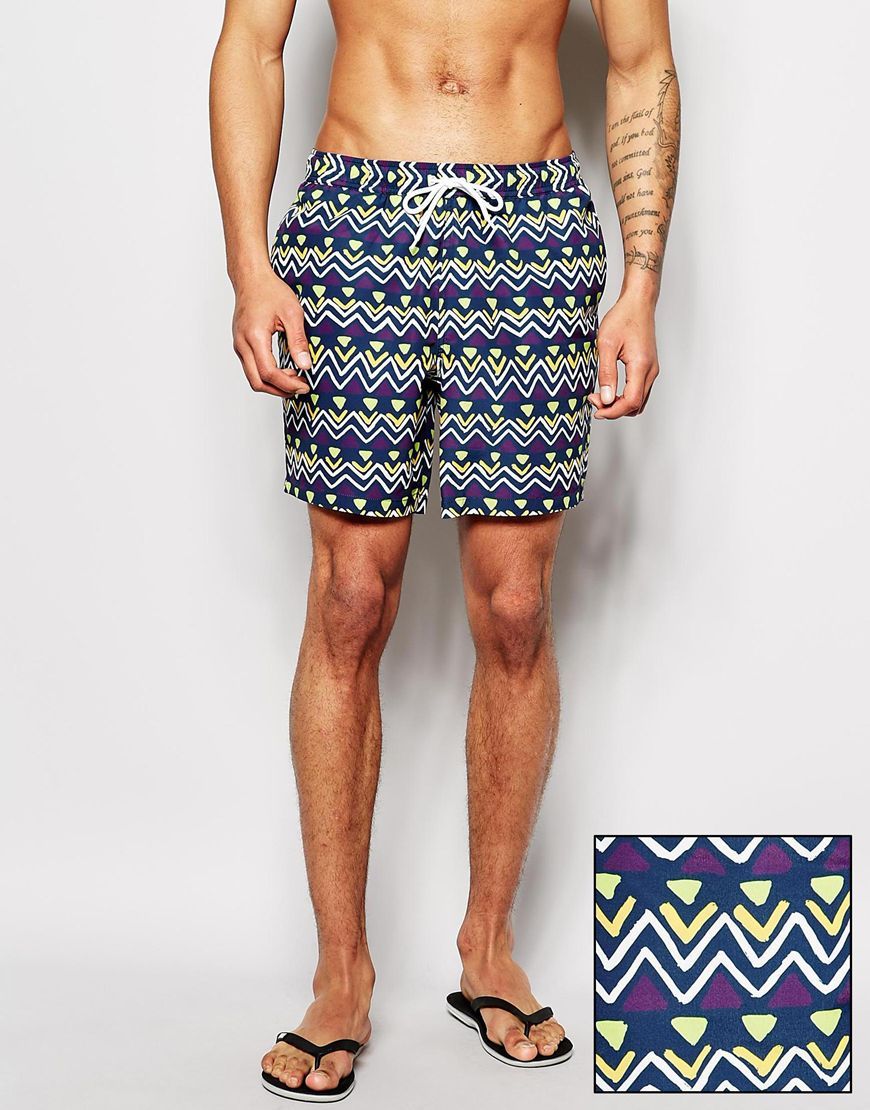 ASOS - Short de bain mi-long à motif géométrique - Bleu marine