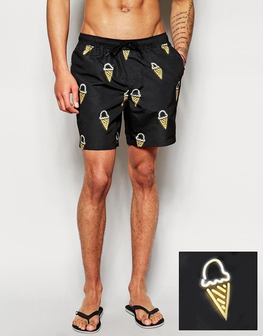 ASOS - Short de bain mi-long motif cornets de glace - Noir
