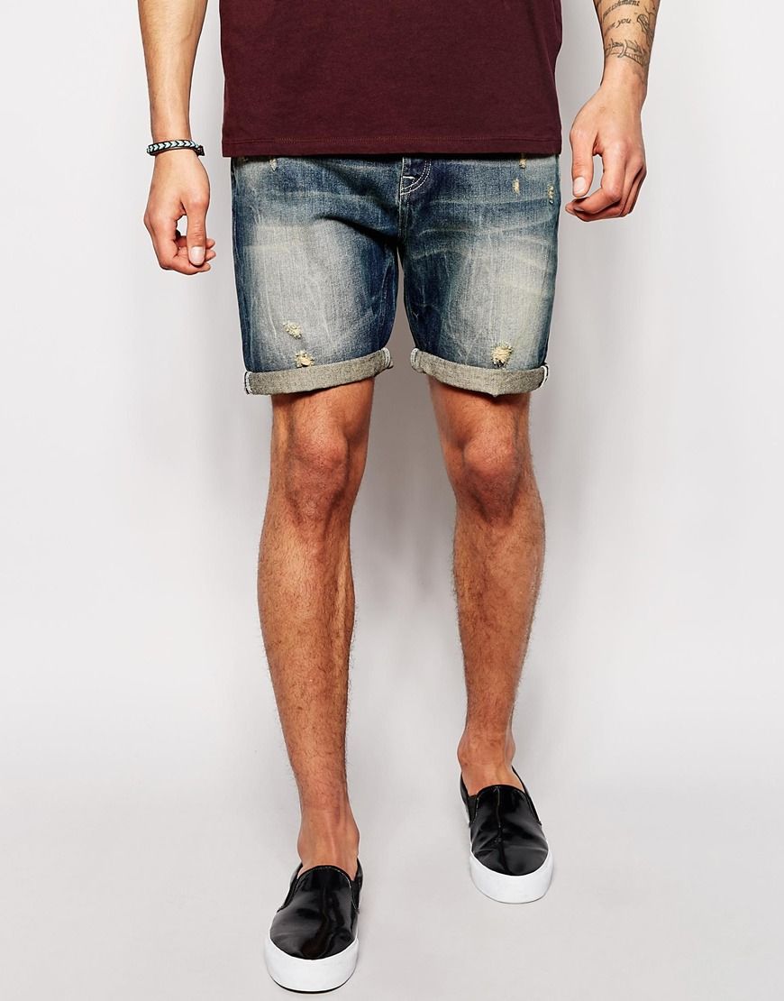 • ASOS - Short slim en jean avec effet usé - Bleu