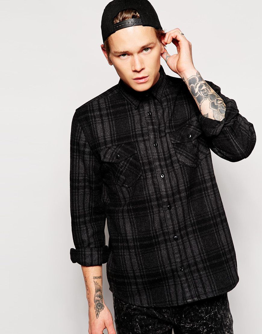 • ASOS - Surchemise manches longues en laine à carreaux noir et blanc