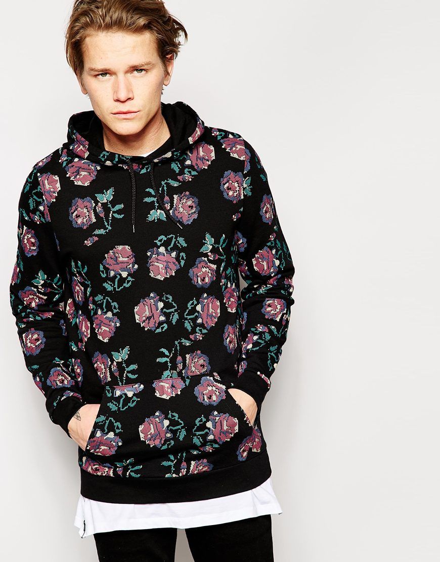 • ASOS - Sweat à capuche coupe longue à imprimé fleuri - Noir