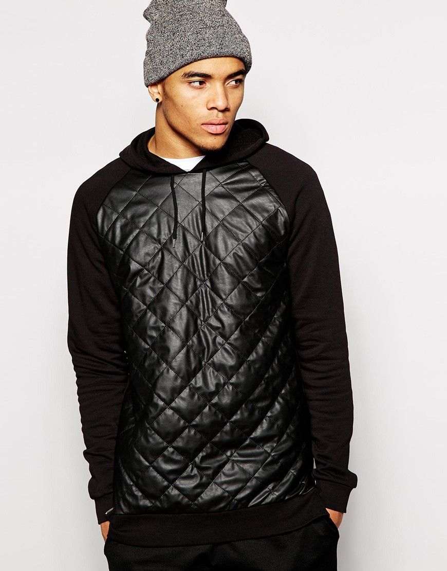 • ASOS - Sweat Ă  capuche coupe longue avec devant matelassĂ© en PU et fermetures Ă©clair sur les cĂ´tĂ©s - Noir