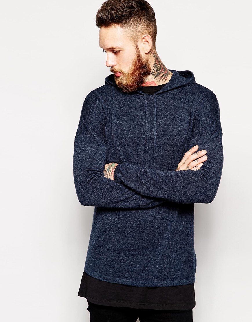 • ASOS - Sweat à capuche en maille coupe skateur - Bleu