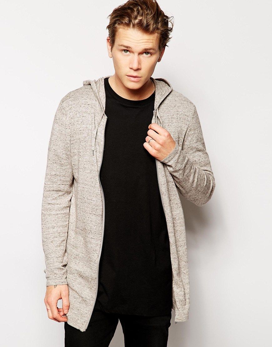 Achetez ASOS - Sweat à capuche long zippé en maille, sweat Asos pour homme sur Pickture, dans les tendances ASOS, Sweat, maille, Gris