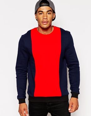 Achetez ASOS - Sweat à empiècements color block, sweat Asos pour homme sur Pickture, dans les tendances ASOS, Sweat, color, Rouge