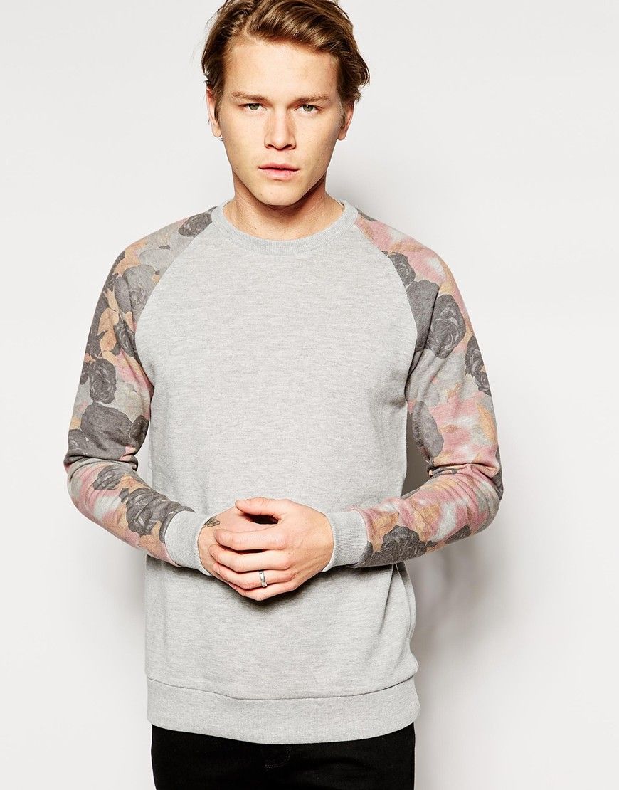 Achetez ASOS - Sweat avec manches à imprimé floral, sweat Asos pour homme sur Pickture, dans les tendances ASOS, Sweat, floral, Gris