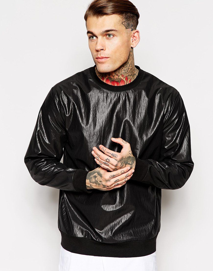 Achetez ASOS - Sweat coupe confortable en tissu enduit, sweat Asos pour homme sur Pickture, dans les tendances ASOS, Sweat, Noir