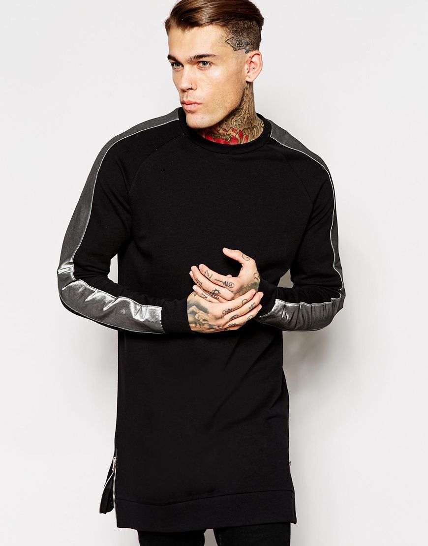 ASOS - Sweat long à manches rayées et fermeture éclair sur les côté - Noir