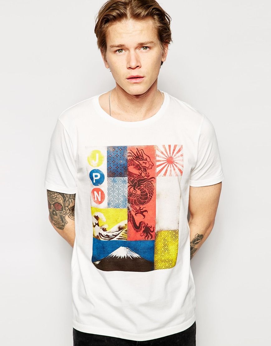 Achetez ASOS - T-shirt à imprimés sur le thème du Japon, t-shirt Asos pour homme sur Pickture, dans les tendances ASOS, Blanc
