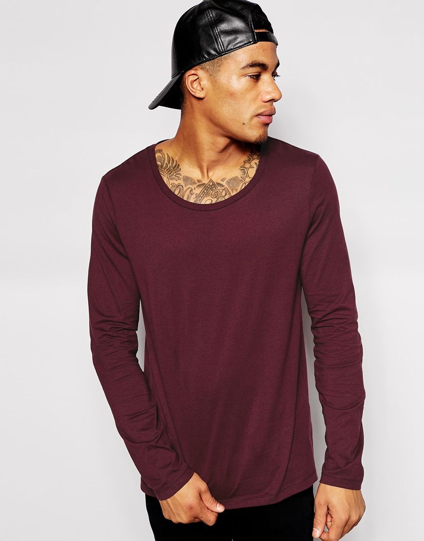 Achetez ASOS - T-shirt Ă  manches longues et encolure, t-shirt Asos pour homme sur Pickture, dans les tendances ASOS, Bordeaux
