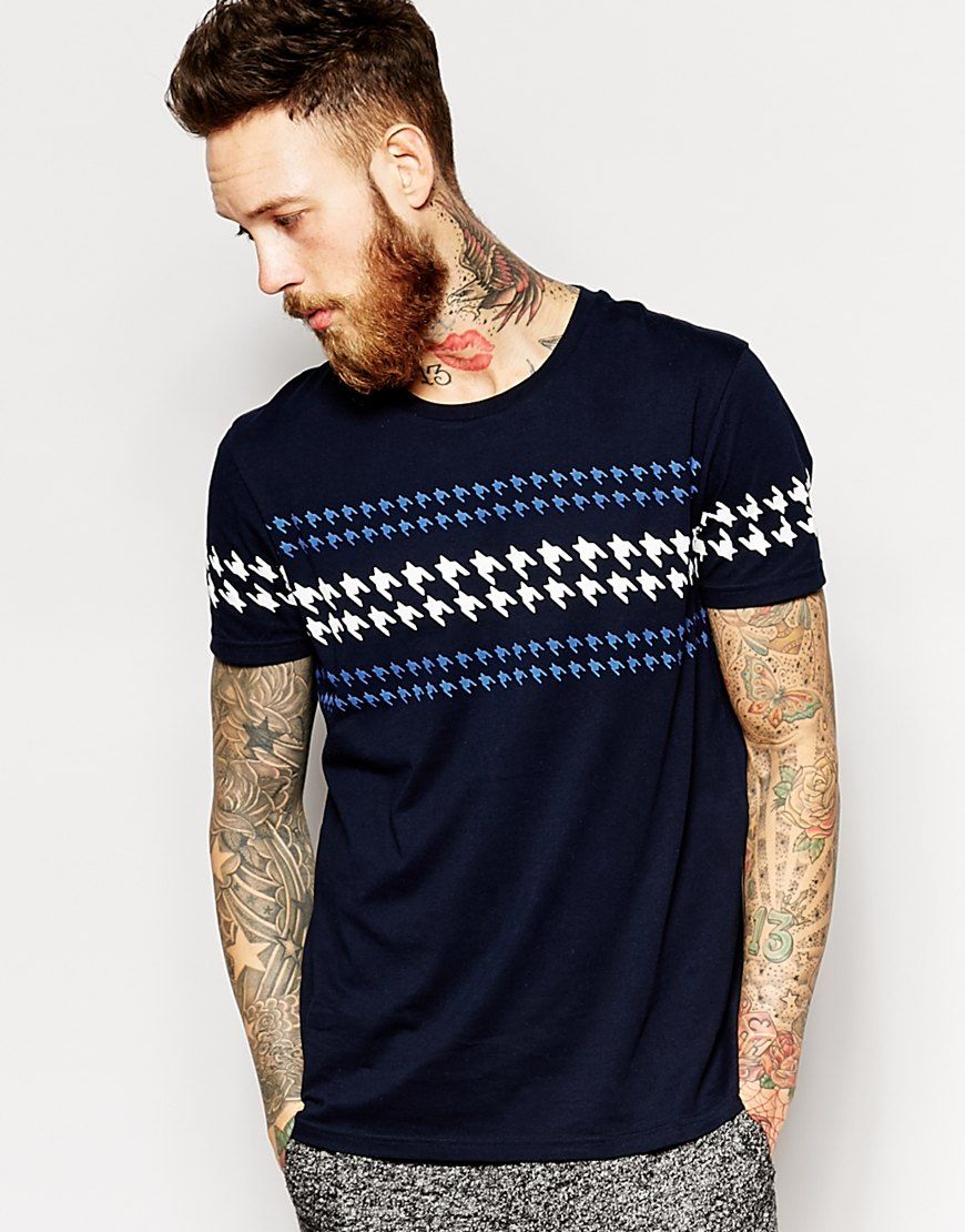 Achetez ASOS - T-shirt à rayures pied-de-poule, t-shirt Asos pour homme sur Pickture, dans les tendances ASOS, rayures, Bleu, marine