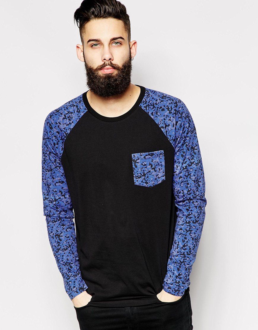 Achetez ASOS - T-shirt avec poche et manches longues, t-shirt Asos pour homme sur Pickture, dans les tendances ASOS, camouflage, Noir