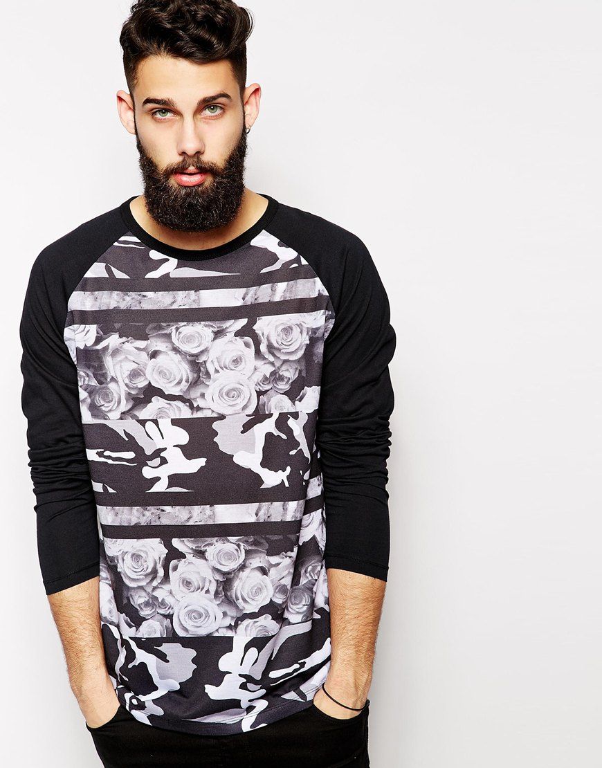 Achetez ASOS - T-shirt coupe skater à manches longues, t-shirt Asos pour homme sur Pickture, dans les tendances ASOS, skater, fleurs, camouflage, Noir