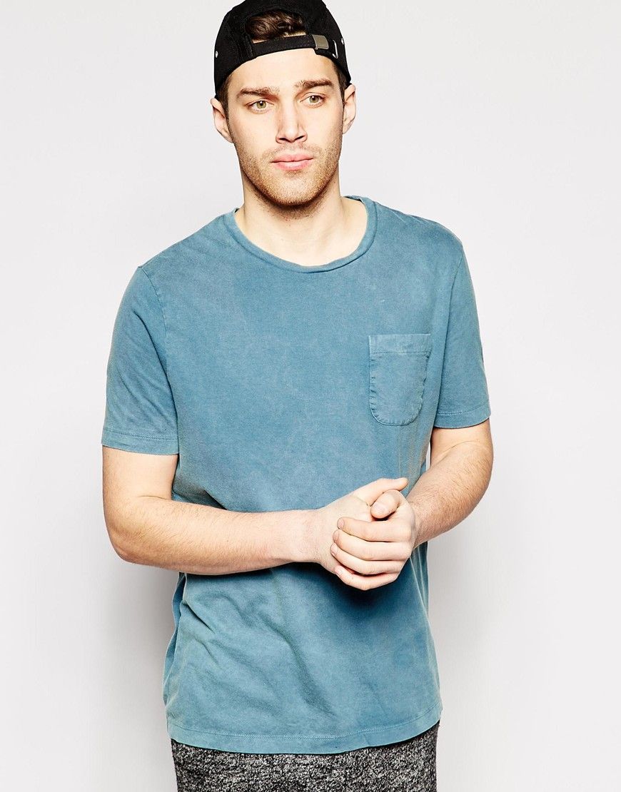 • ASOS - T-shirt coupe skateur dĂ©contractĂ©e dĂ©lavĂ© Ă  l'acide - Teal
