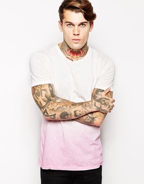 Achetez ASOS - T-shirt en jersey flammé effet dip-dye, t-shirt Asos pour homme sur Pickture, dans les tendances ASOS, jersey, Rose