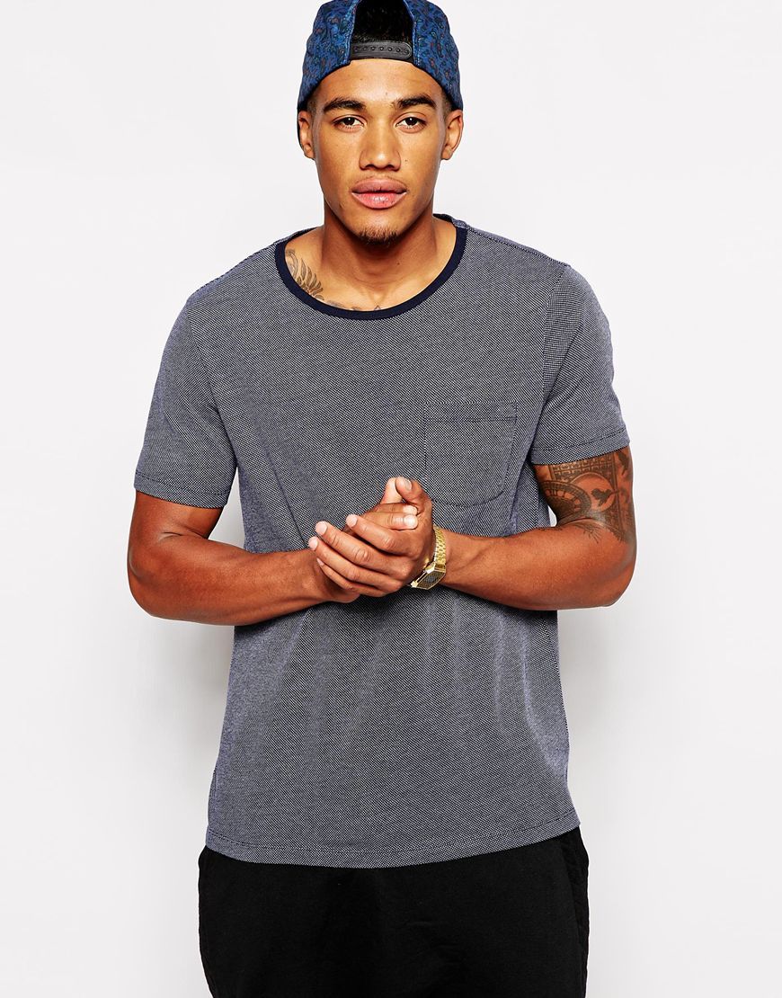 ASOS - T-shirt en jersey jacquard texturé avec poche - Bleu marine