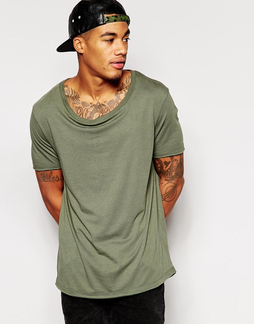 Achetez ASOS - T-shirt long avec encolure stretch et, t-shirt Asos pour homme sur Pickture, dans les tendances ASOS, Vert