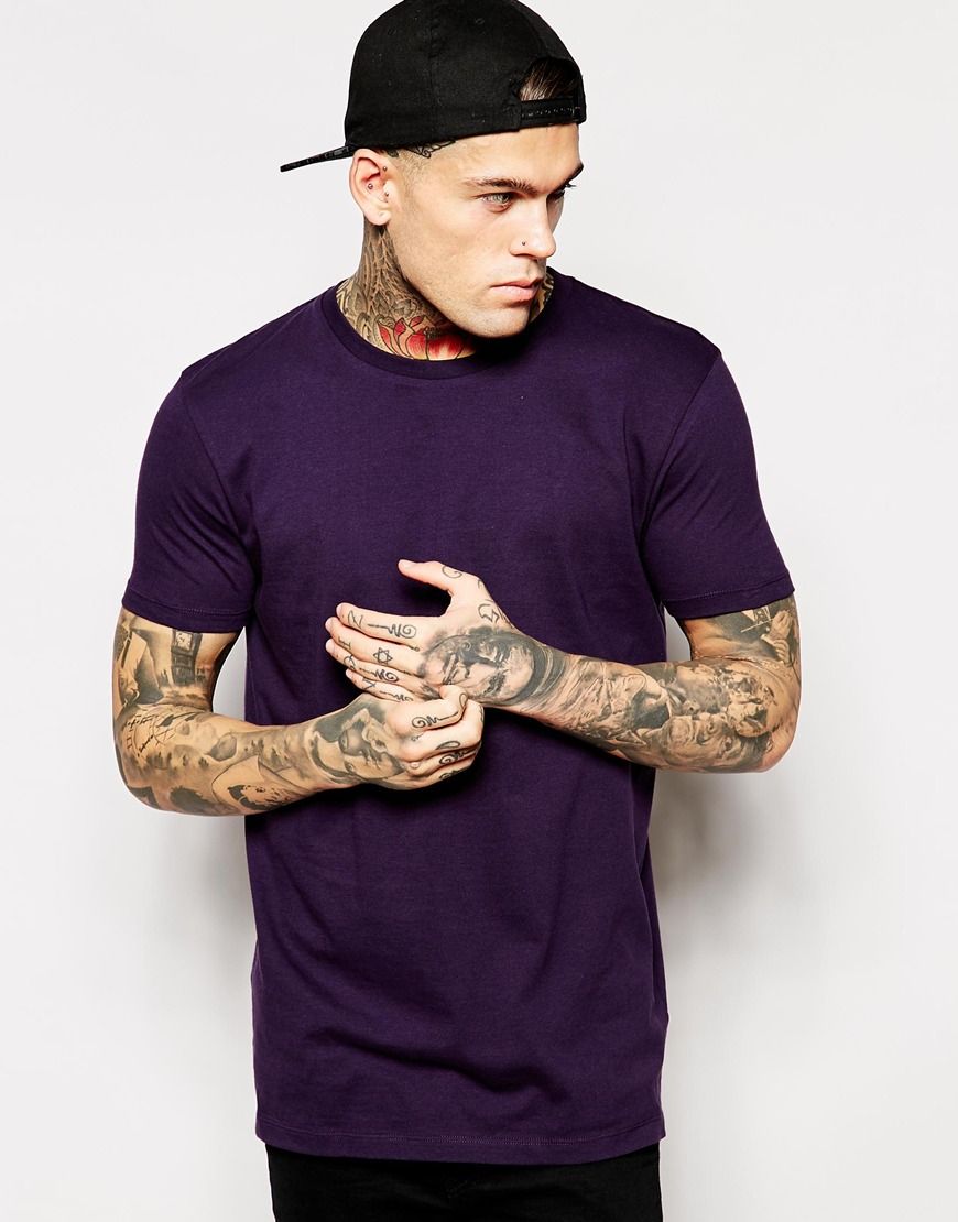 • ASOS - T-shirt long coupe skateur dĂ©contractĂ©e Ă  encolure dĂ©gagĂ©e - Violet