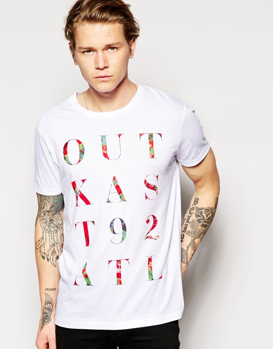 • ASOS - T-shirt long coupe skateur imprimé « Outkast » - Blanc