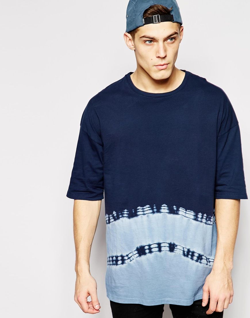 ASOS - T-shirt long oversize à effet délavé - Bleu marine