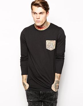 Achetez ASOS - T-shirt manches longues avec poche à, t-shirt Asos pour homme sur Pickture, dans les tendances ASOS, Noir