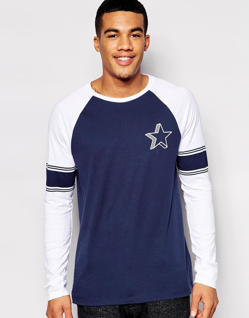 • ASOS - T-shirt manches longues avec poche à imprimé étoiles et manches rayées