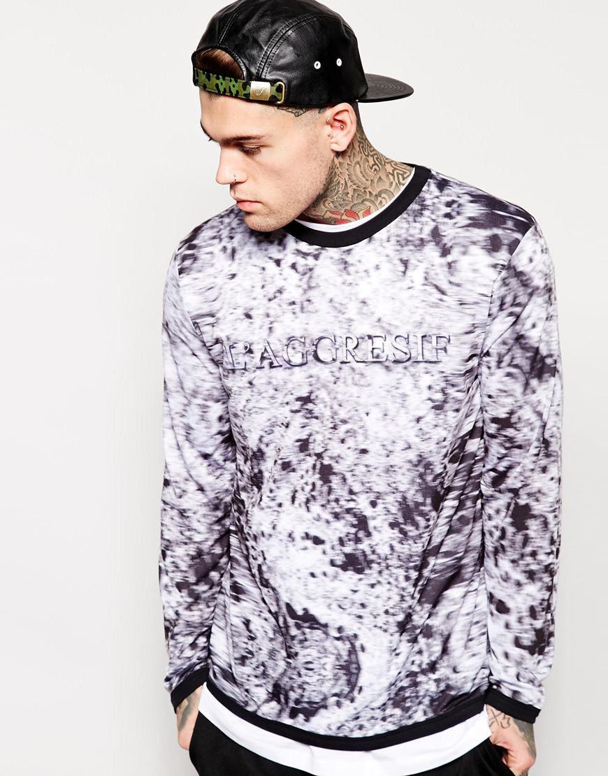 • ASOS - T-shirt oversize à manches longues et imprimé marbré - Noir