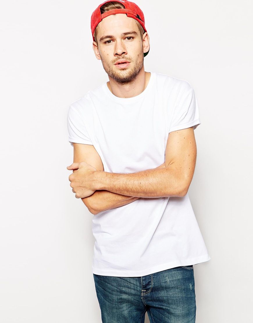 • ASOS - T-shirt ras du cou coupe skateur décontractée avec manches retroussées - Blanc
