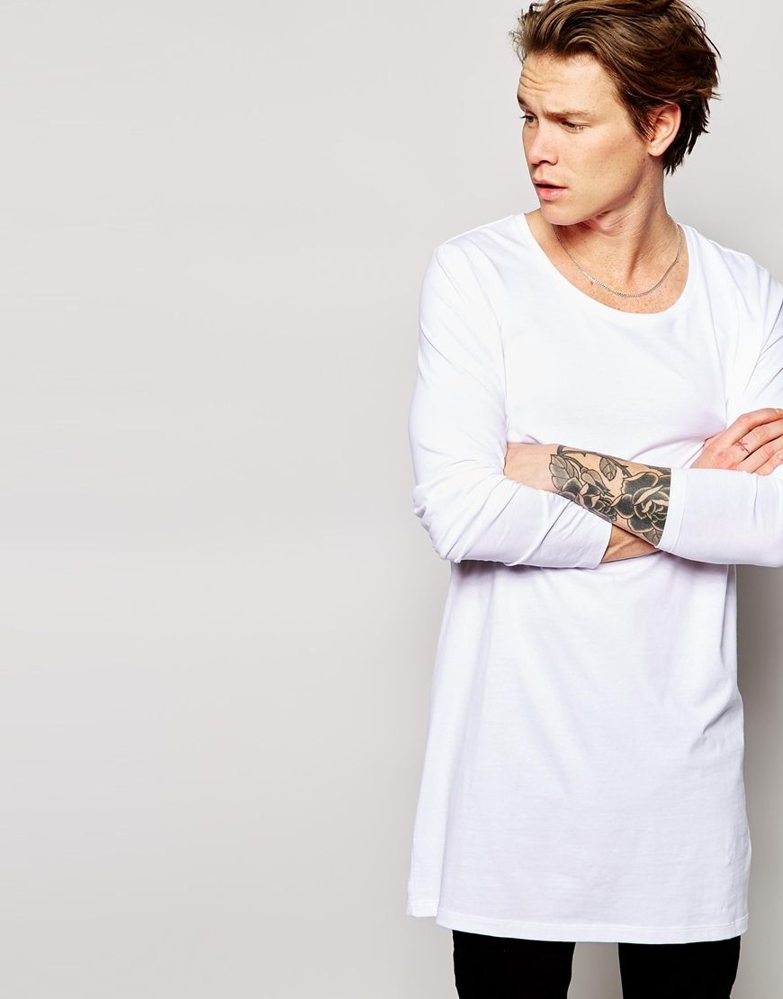 • ASOS - T-shirt ultra long Ă  encolure dĂ©gagĂ©e et manches longues - Blanc