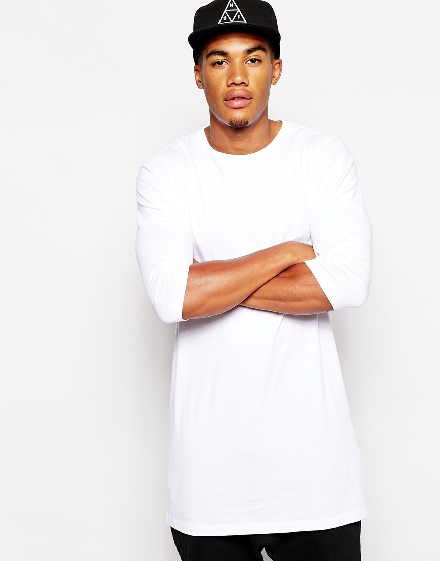• ASOS - T-shirt ultra long à manches 3/4 - Blanc