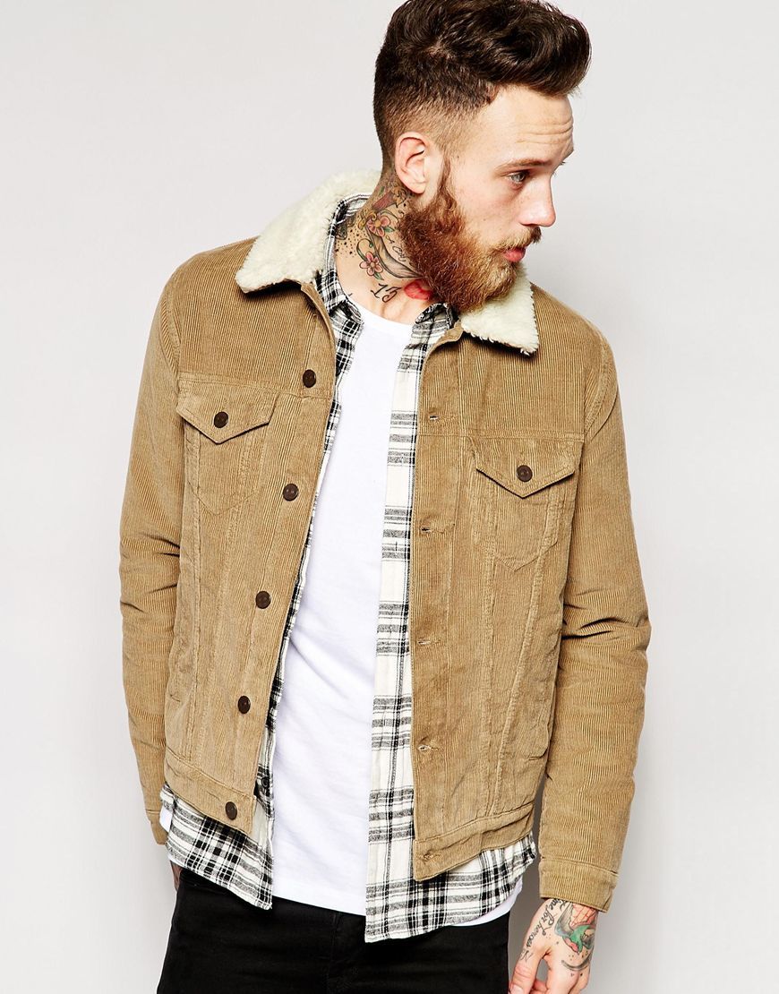 • ASOS - Veste style western en velours cĂ´telĂ© avec col imitation peau retournĂ©e - Taupe