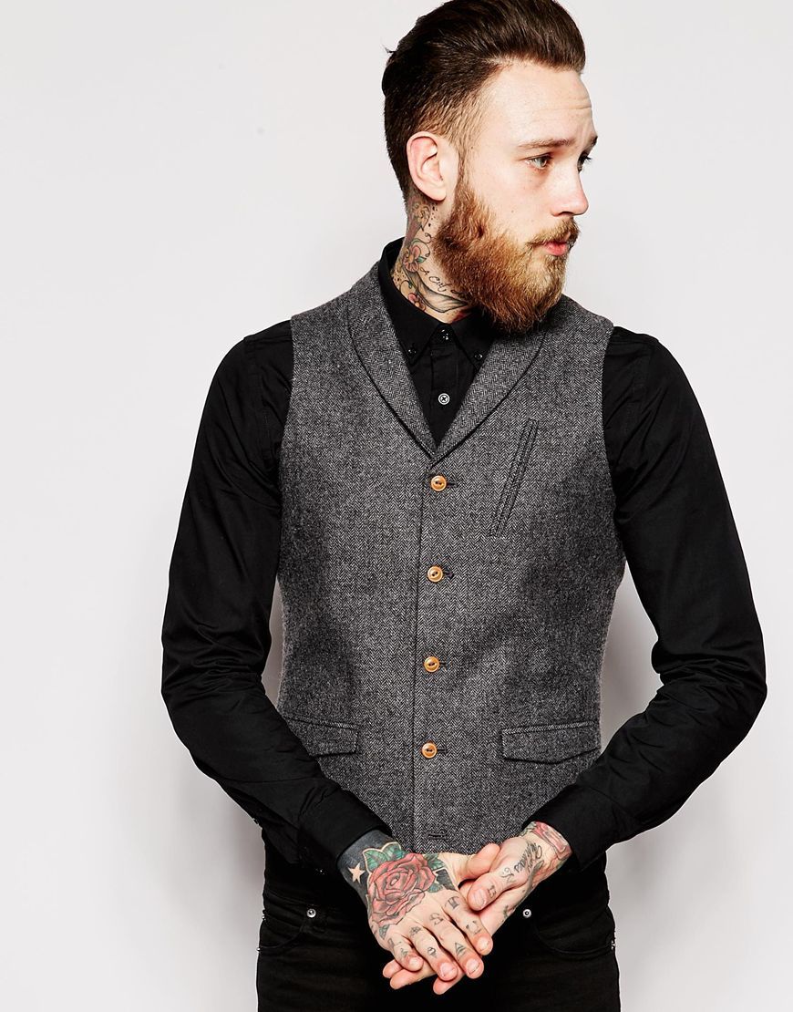 ASOS - Veston cintré à chevrons et col châle - Gris