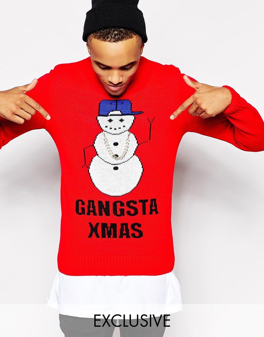 • ASOS Vintage - Pull style Noël à imprimé Bonhomme de neige gangster - Rouge