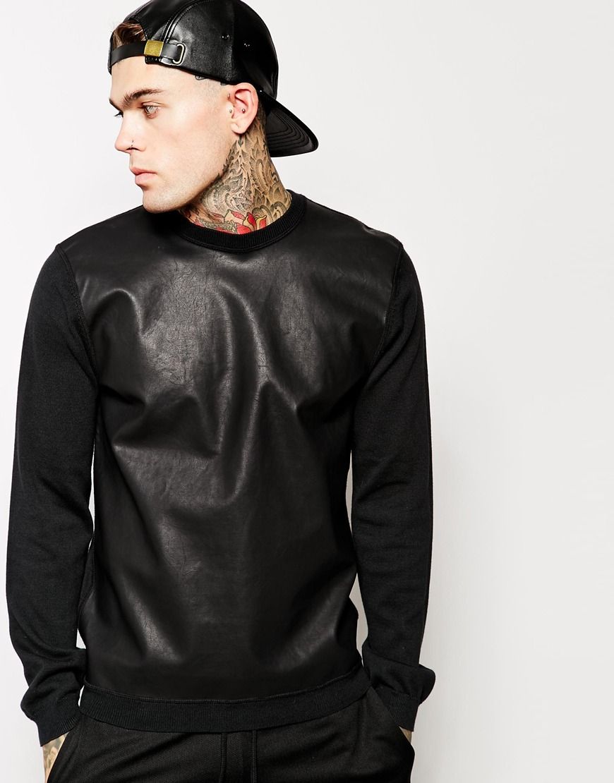Achetez ASOS White - Pull avec devant en similicuir, Asos pour homme sur Pickture, dans les tendances ASOS, White, Pull, Noir