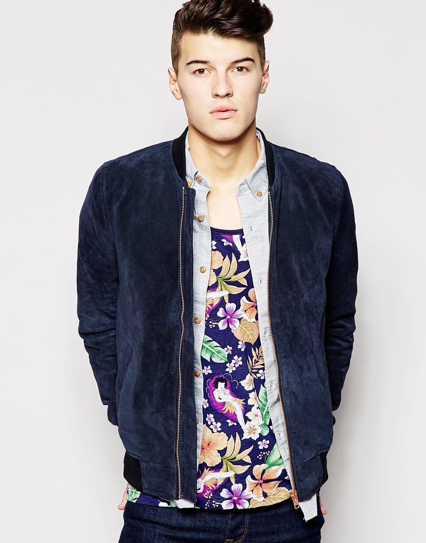 Achetez Bellfield - Blouson aviateur en daim, blouson Bellfield pour homme sur Pickture, dans les tendances Blouson, daim, Bleu, marine