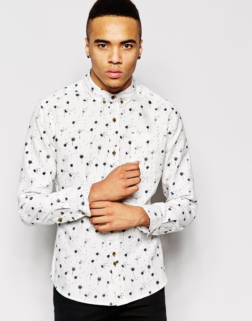 Bellfield - - Chemise Oxford à imprimé pissenlit - Blanc