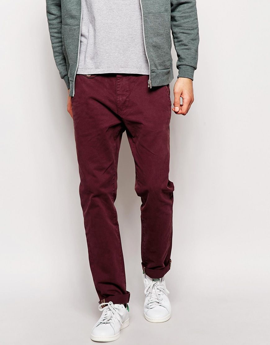 Achetez Bellfield - Pantalon chino slim à revers, pantalon Bellfield pour homme sur Pickture, dans les tendances Pantalon, chino, slim, Vin