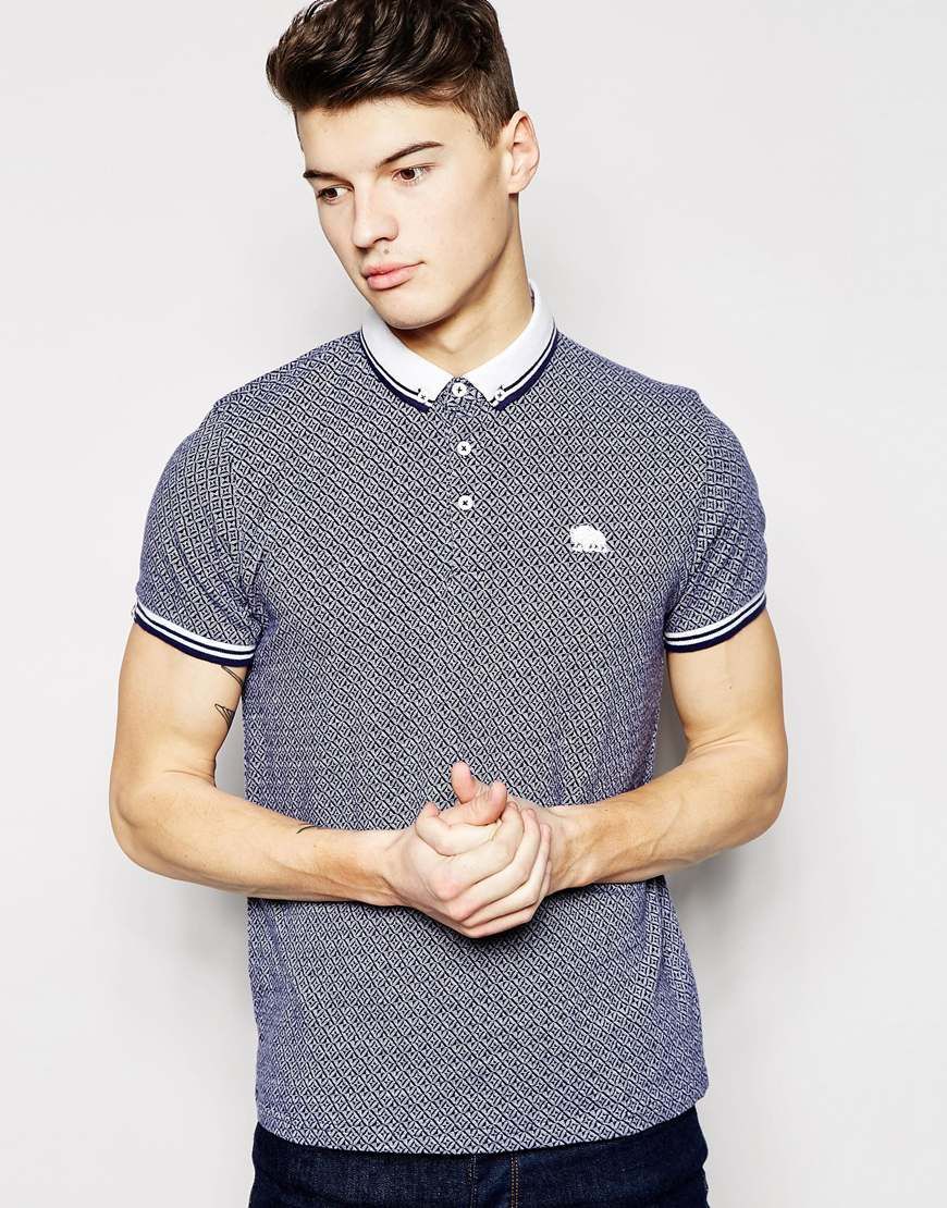 • Bellfield Polo Shirt with All Over Jacquard - Bleu marine
