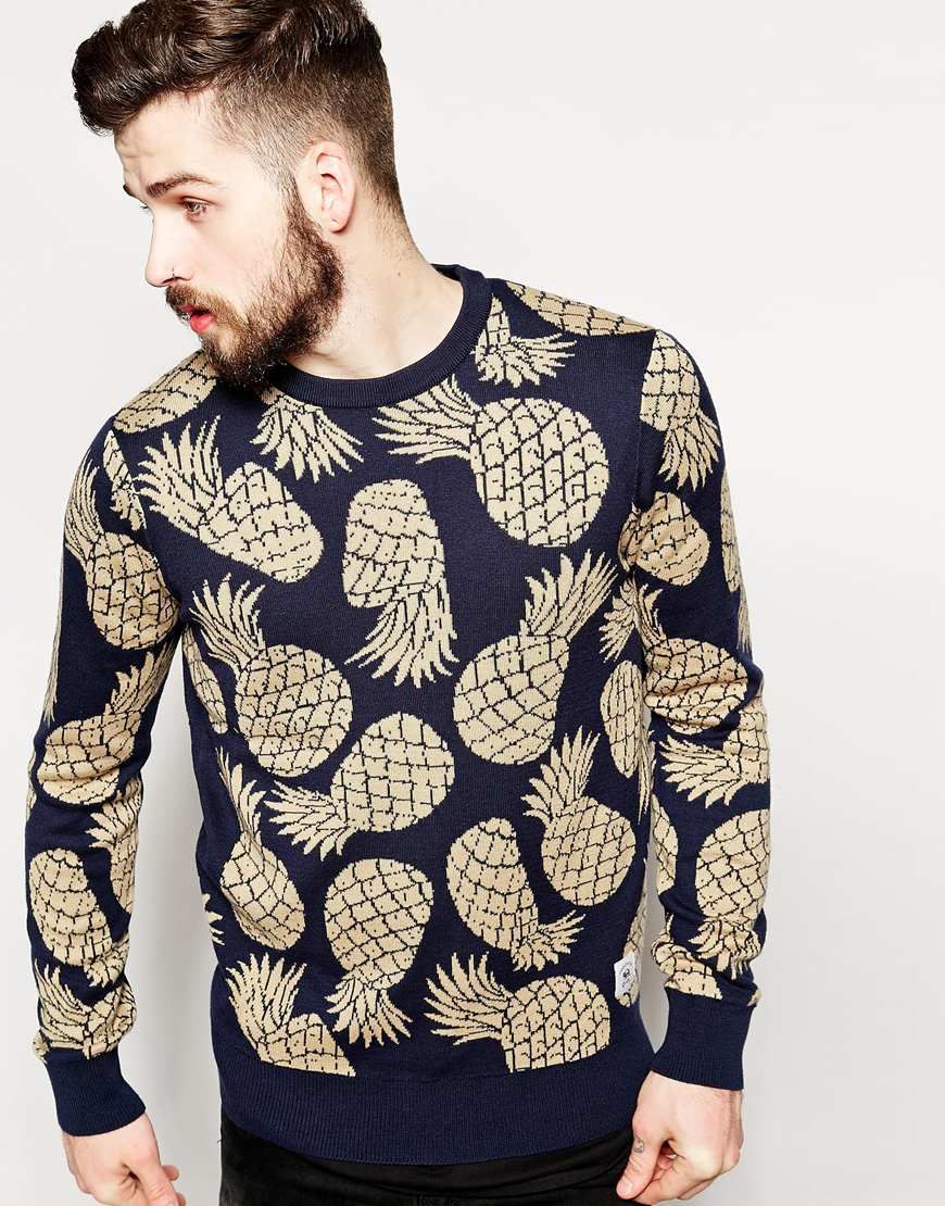 Bellfield - - Pull en maille jacquard motif ananas - Bleu marine