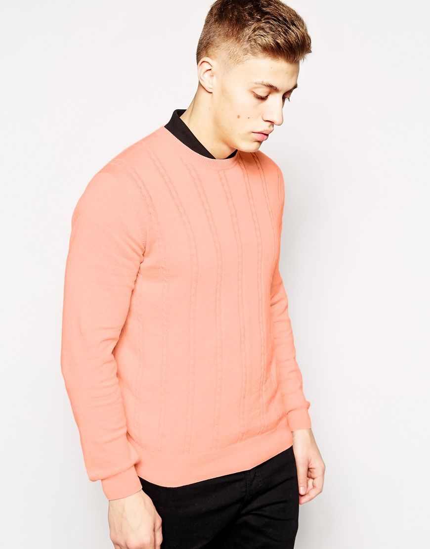 • Ben Sherman - Pull en maille torsadée - Salmon